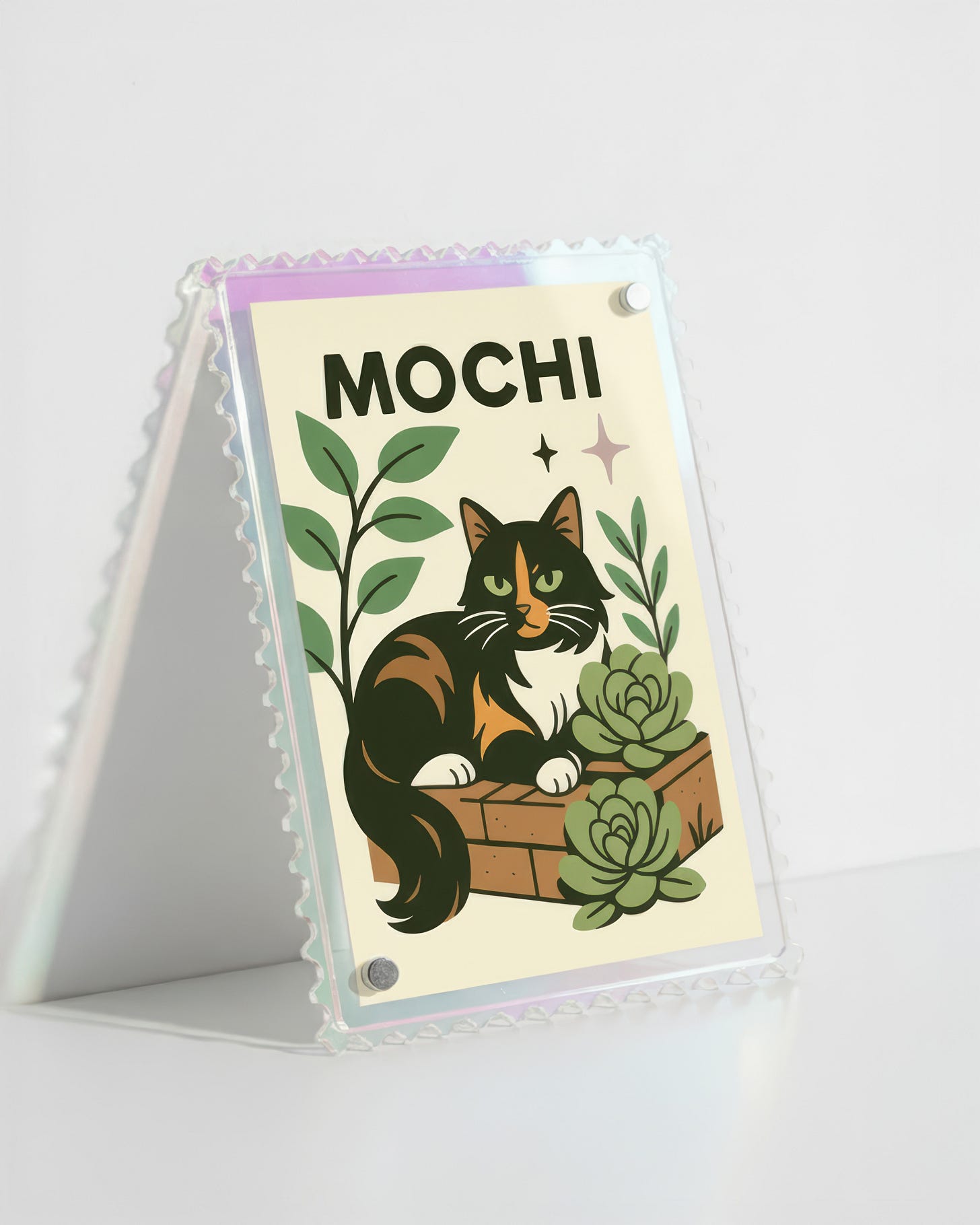 Each one is a 2”x3” glossy mini print with a peelable sticker backing, shipped right to your mailbox, plus a digital download to keep forever. You can stand them up in an acrylic or magnet frame, collect them like keepsakes, slap them on your water bottle or laptop, or share them with friends and family.