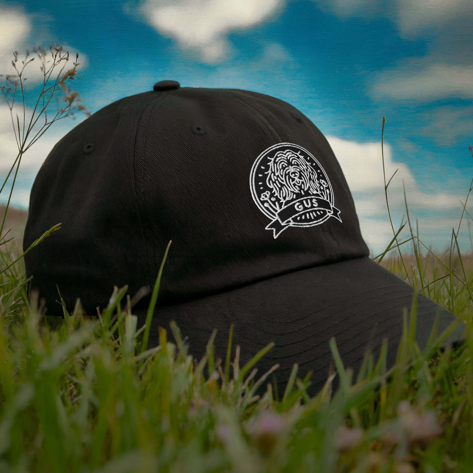 Personalized dad hat, one-of-a-kind dog portrait