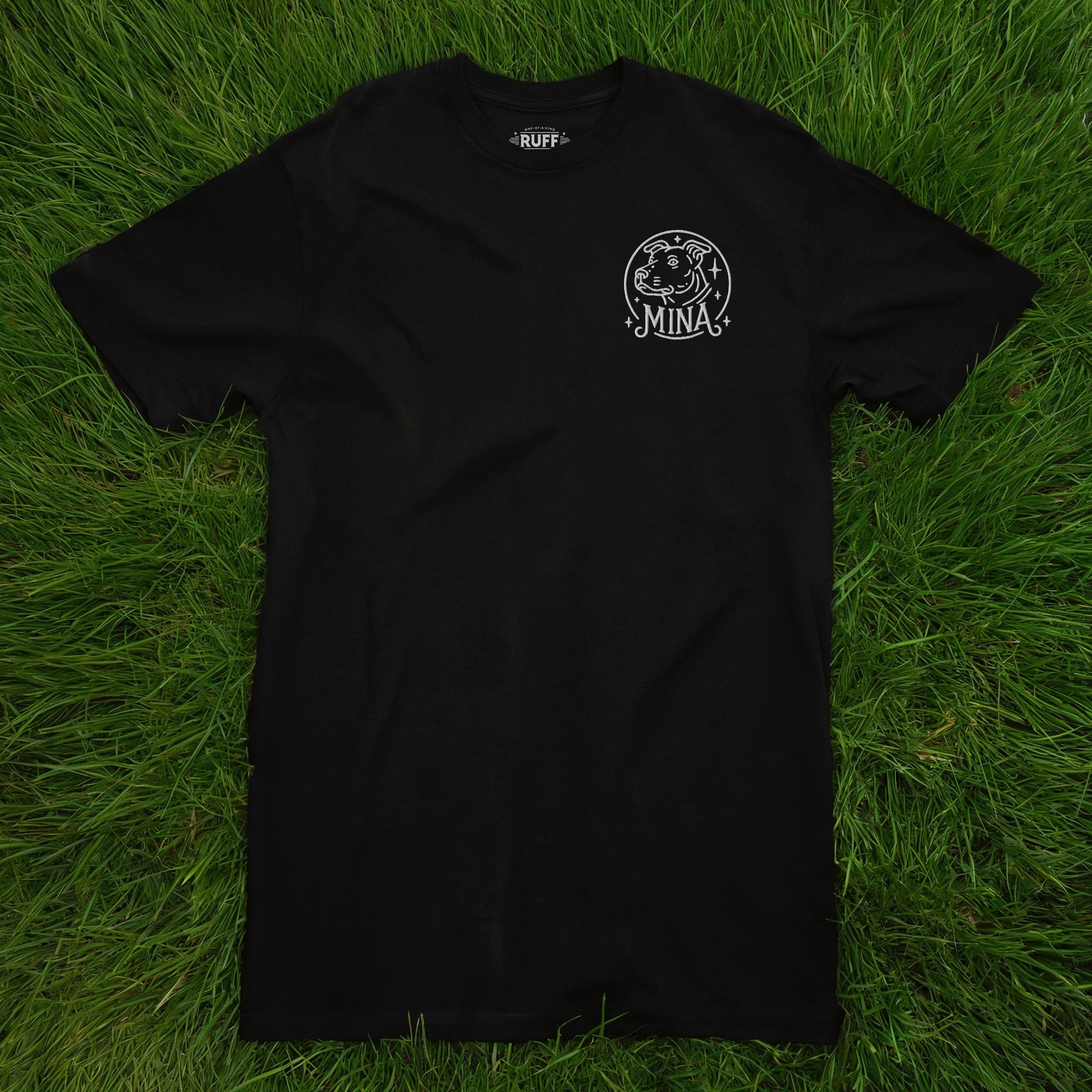 Personalized embroidered heavyweight t-shirt, one-of-a-kind dog portrait