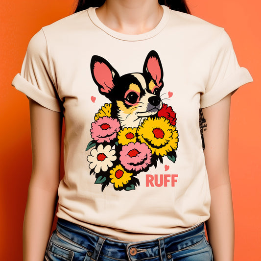 Ruff in Bloom: Chihuahua Among the Flowers Tee