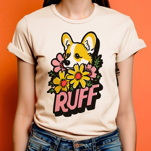 Ruff in Bloom: Corgi Among the Daisies Tee