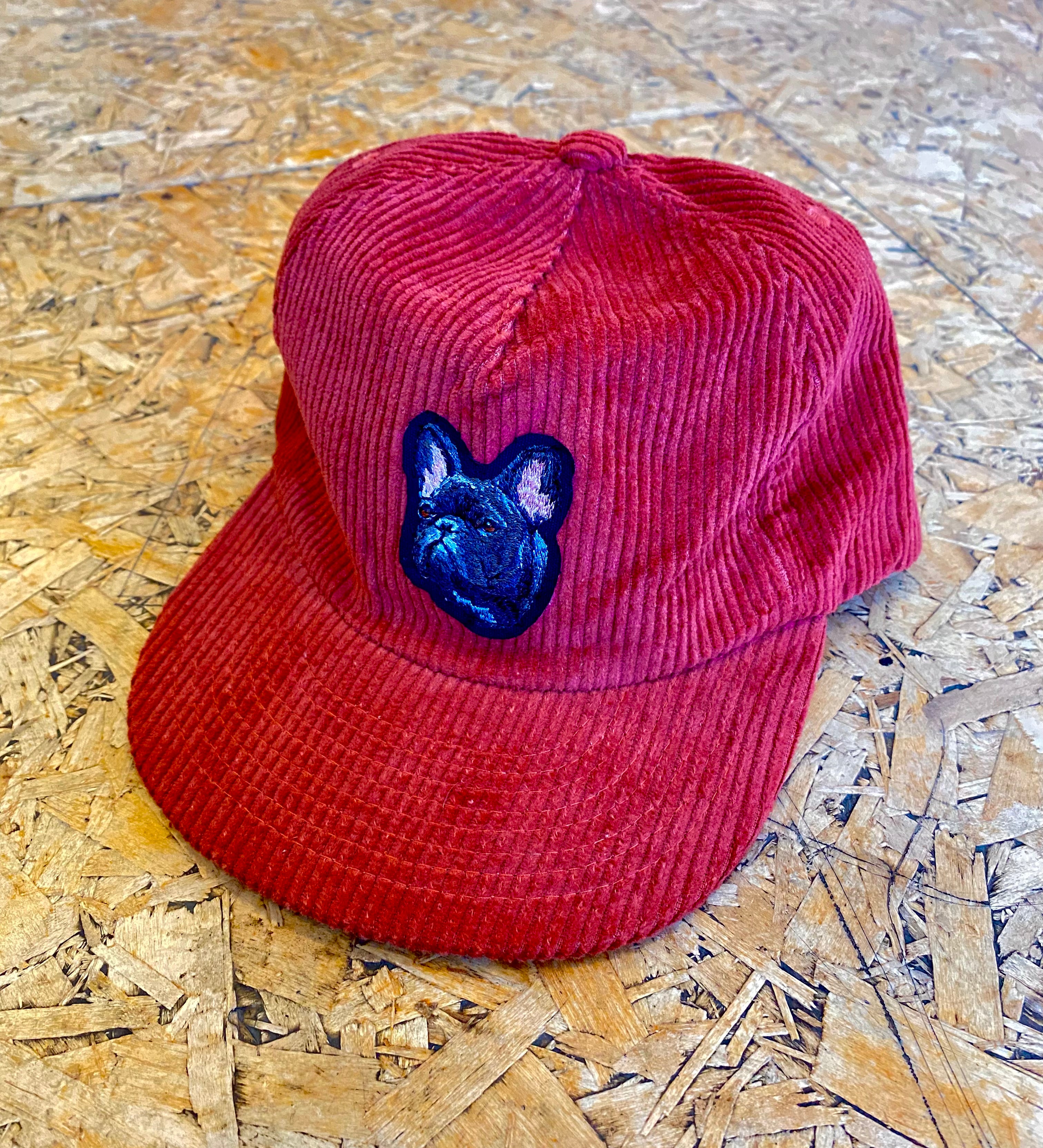 Black Frenchie Red Corduroy Hat