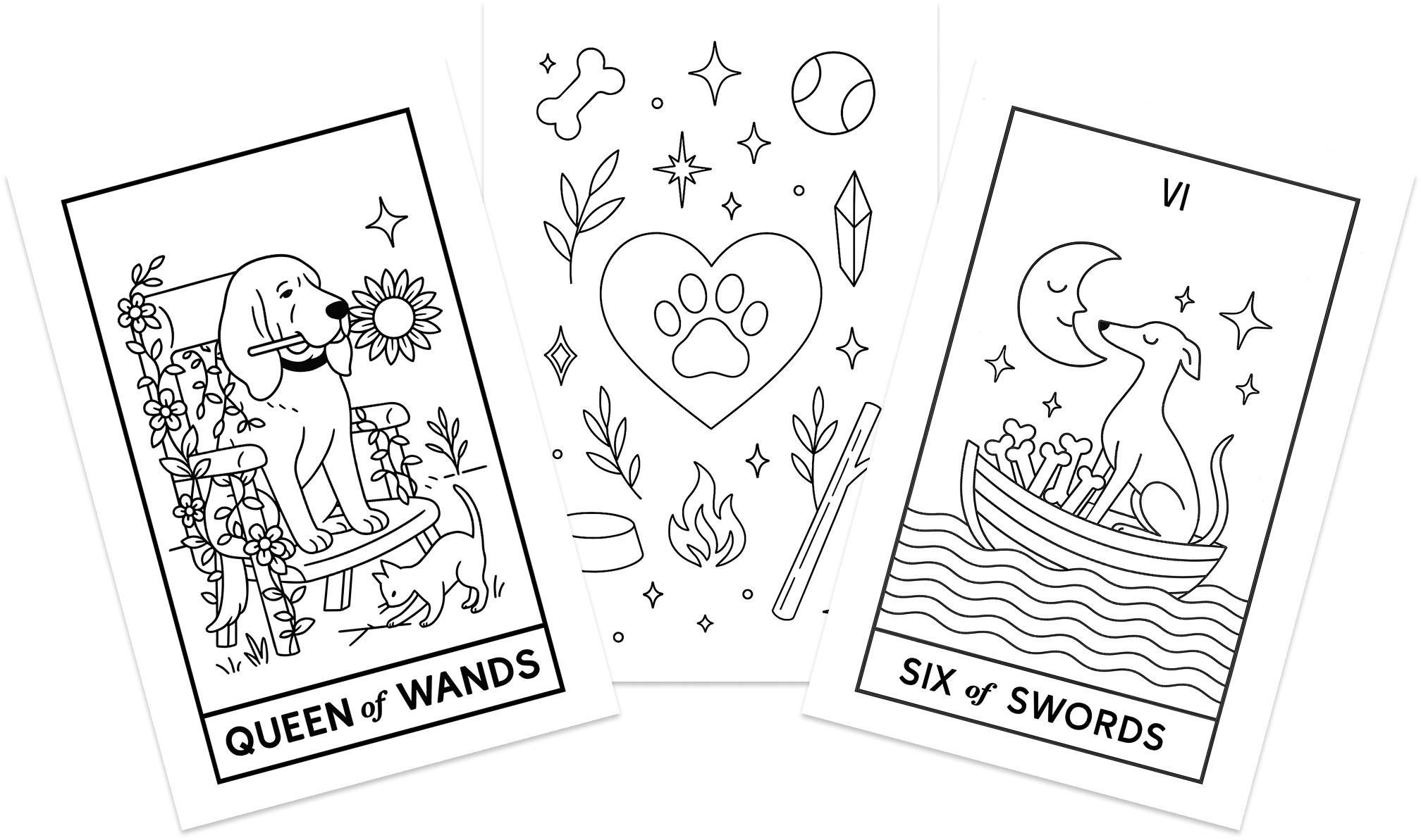 Bring the cards to life, your way. These coloring pages invite you to slow down, connect with each card’s energy, and add your own touch of magic.