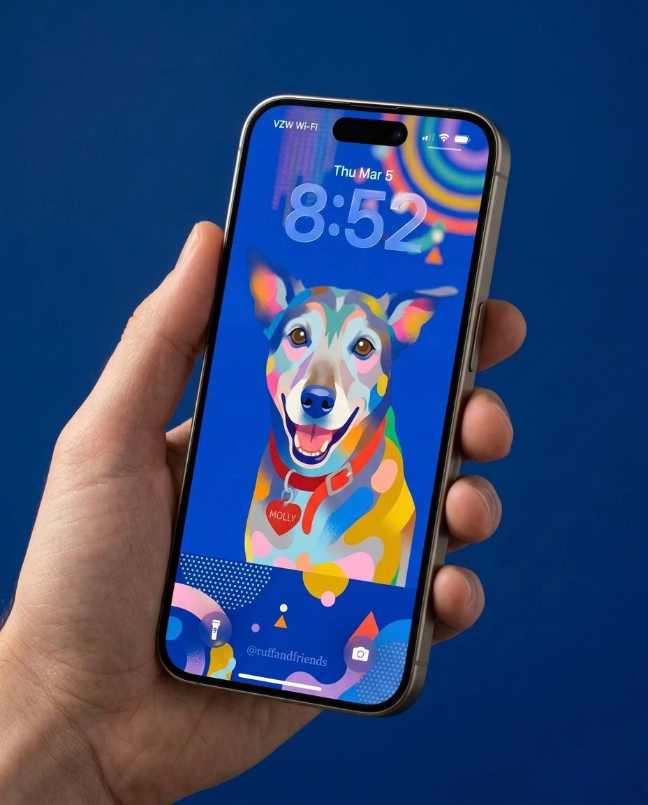 - Custom Bau-Wow high-resolution digital portrait, sized for use as a phone wallpaper