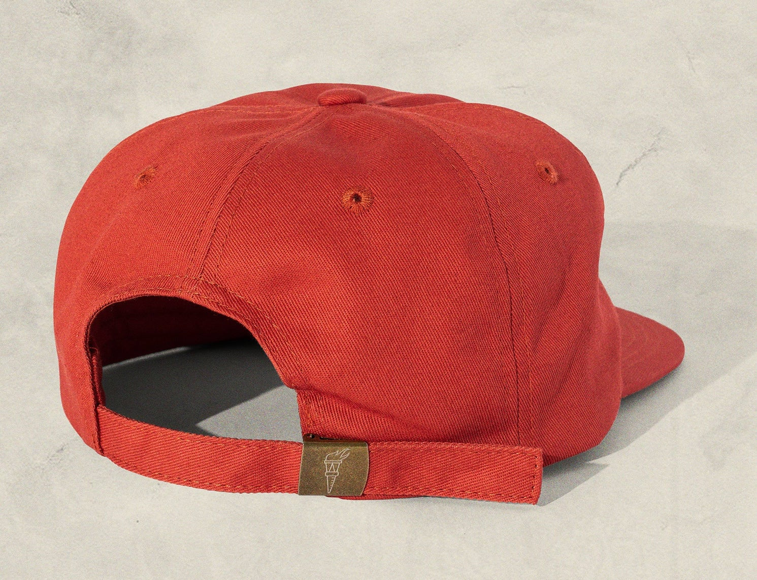 Cayenne unstructured hat with Black and Tan Dachshund patch. This timeless hat is made of cotton fabric and features a fabric strap with brass metal clasp.