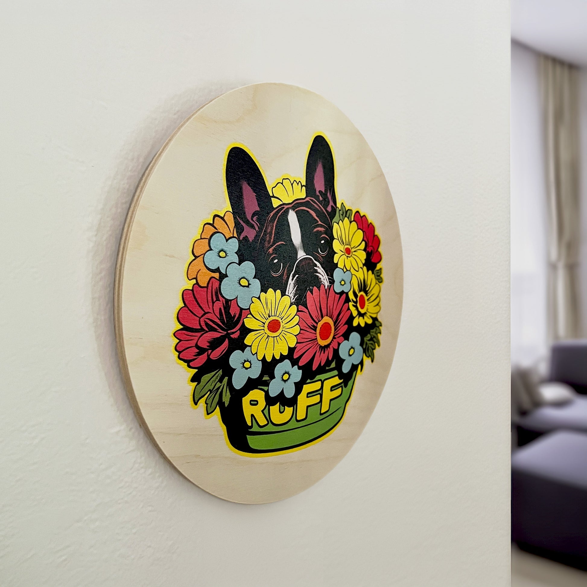 Meet the cutest addition to your wall: our French Bulldog Wood Art! Made with love on smooth Baltic birch, this 10-inch round piece showcases a vintage inspired Frenchie amid a burst of colorful flowers. It's easy to hang, fun to look at, and sure to bring a smile to any room.