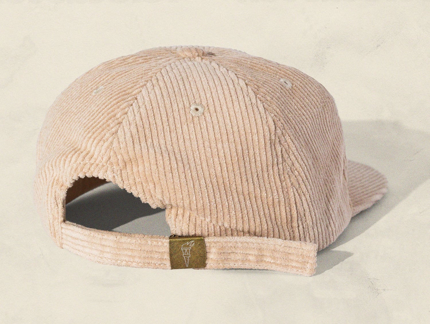 Rust unstructured corduroy hat with Golden Retriever patch. This timeless hat is made of soft corduroy fabric and features a fabric strap with brass metal clasp.