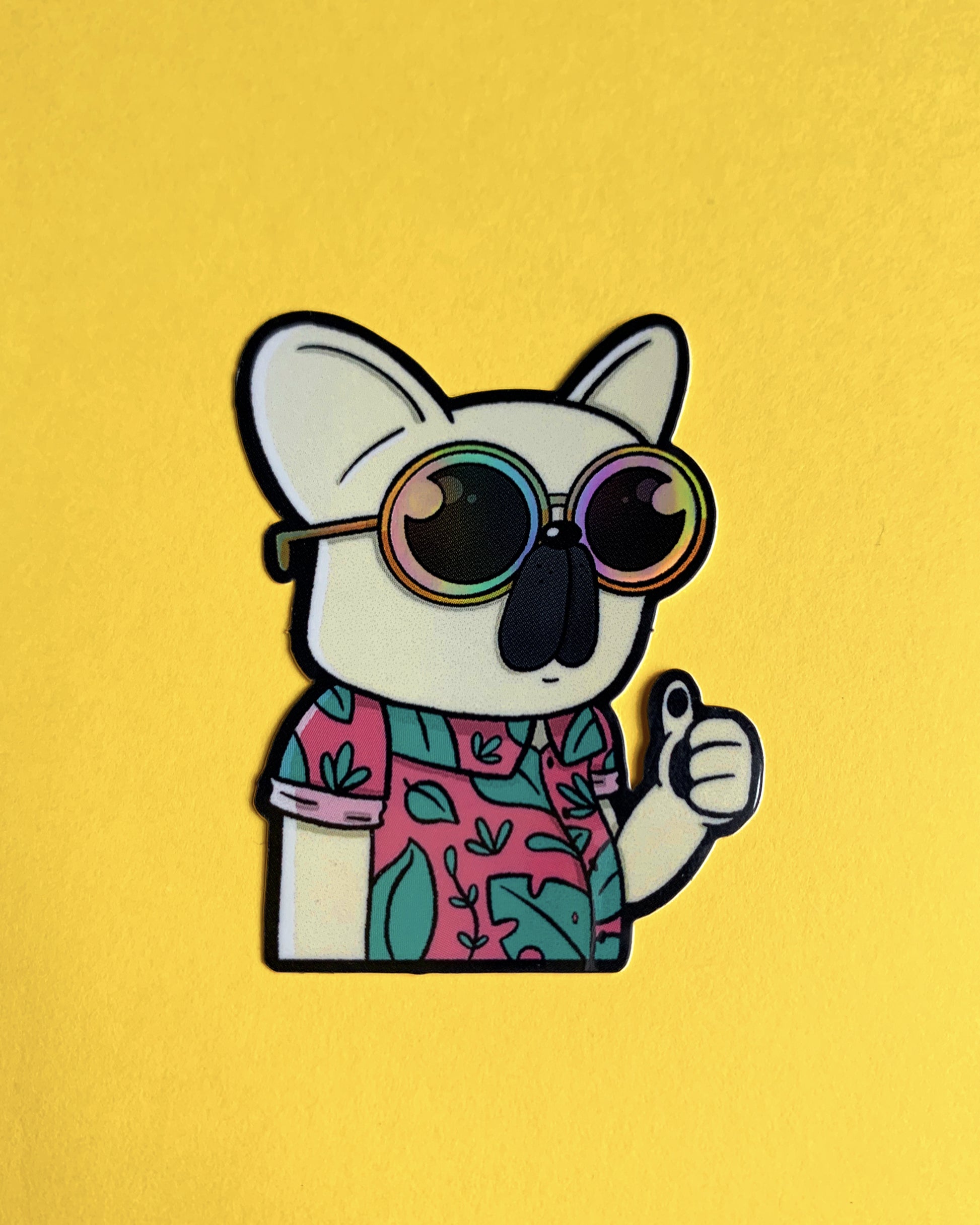 1.5" wide x 2" tall sticker with Holographic glasses.