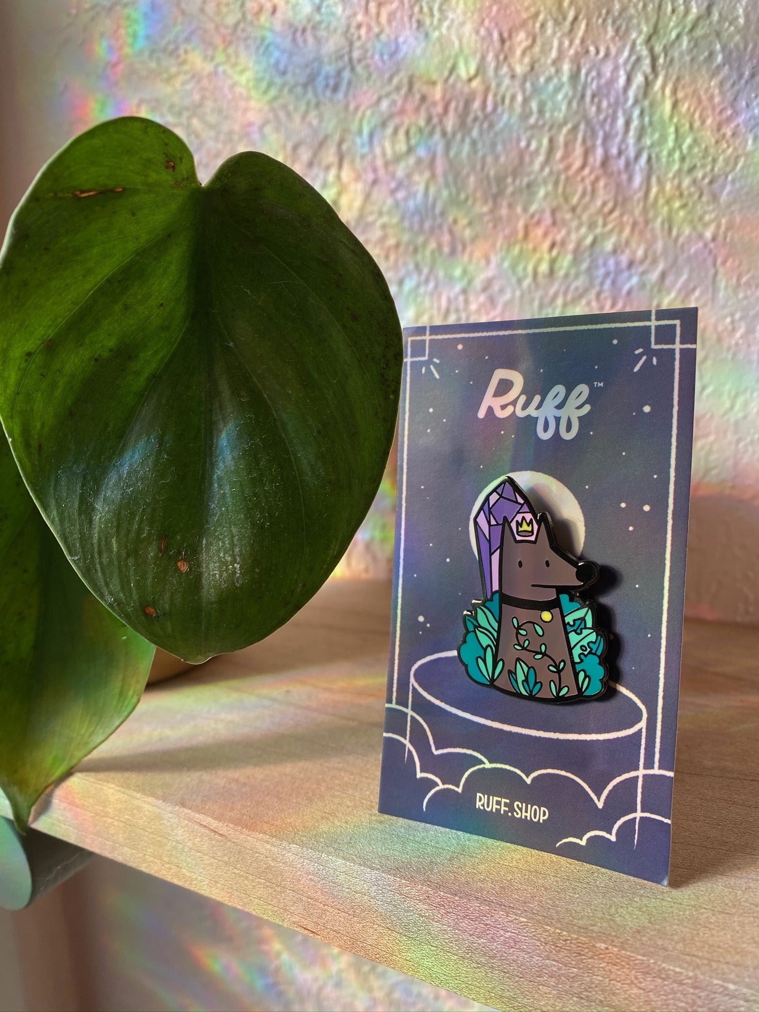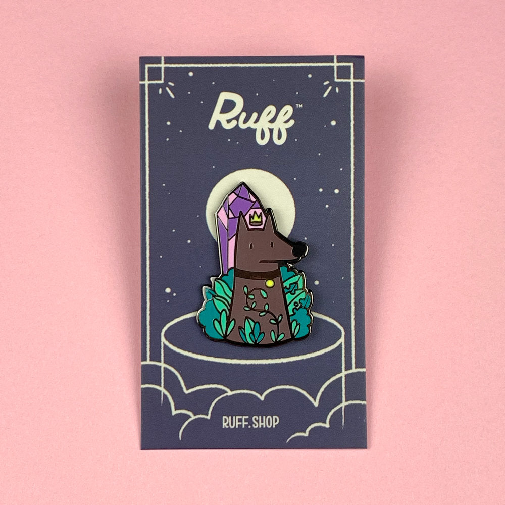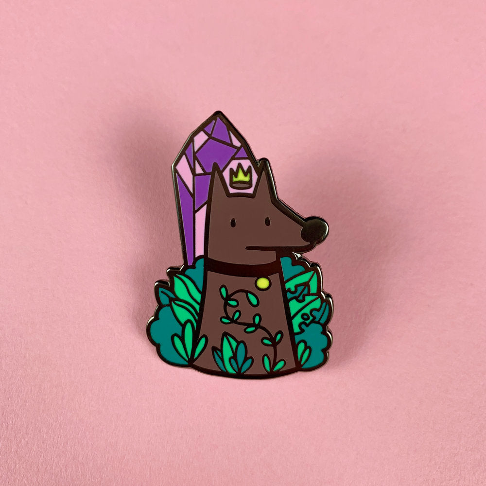 1” x 1.5” Enamel pin with shiny black nickel finish and rubber teal backer.