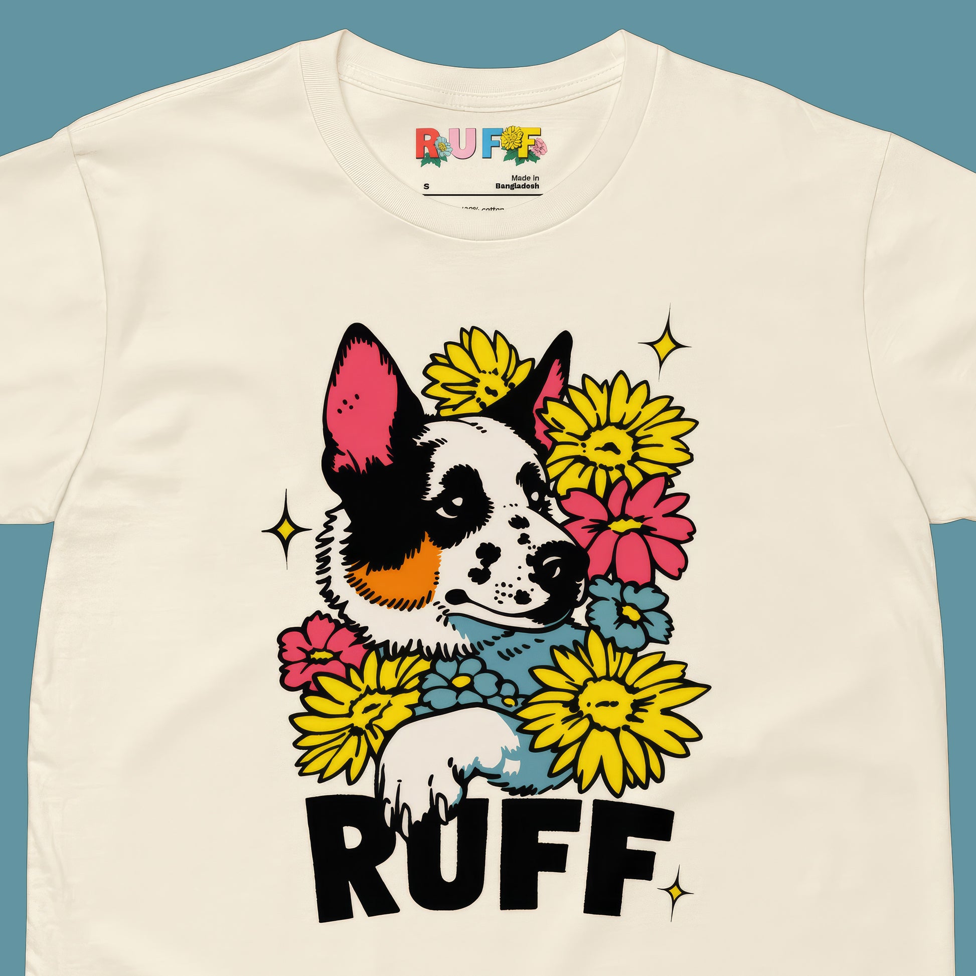 Ruff in Bloom: Cattle Dog Sitting in Flowers Tee